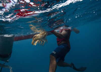 El drama es que los buzos pescan langosta a destajo y nunca respetan las reglas del buceo. Debido a esto, sufren del síndrome de descompresión, que al no ser tratado de forma urgente, los conduce a la muerte mientras regresan al continente y algunos con “suerte” quedan lisiados de por vida. ..