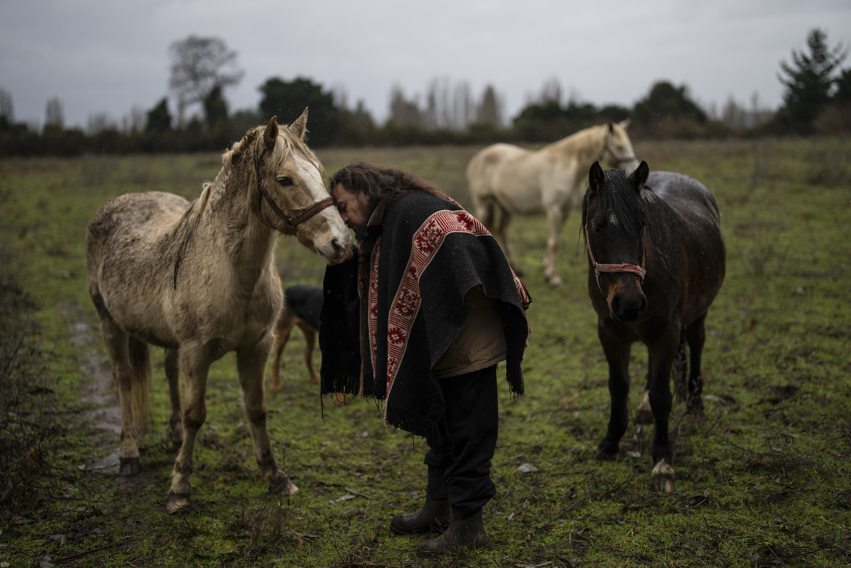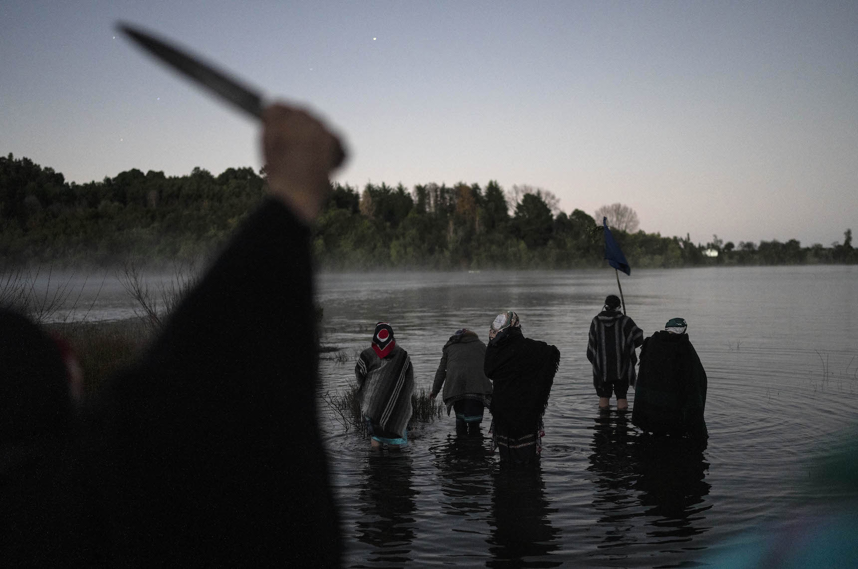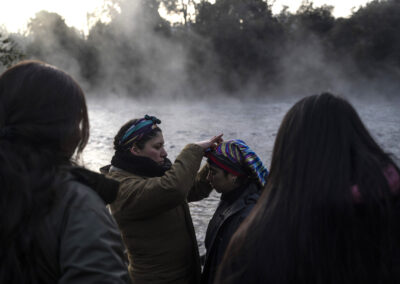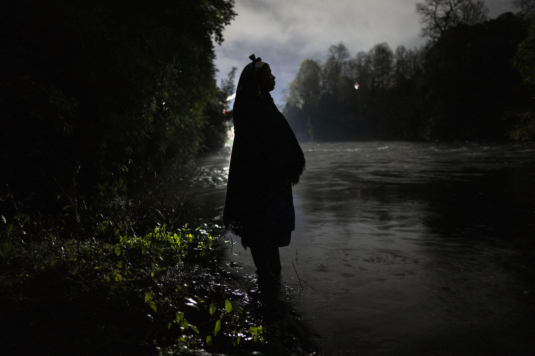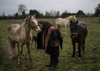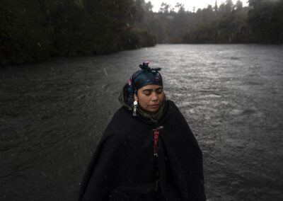 “Yo soy el río también, nosotros somos sagrados como el río”, cuenta la machi (Las machi son las intermediarias entre el mundo mapuche y el mundo sobrenatural, velan por el bienestar de sus enfermos y la comunidad) Millaray Huichalaf, mientras una tormenta golpeaba su cabaña de madera.